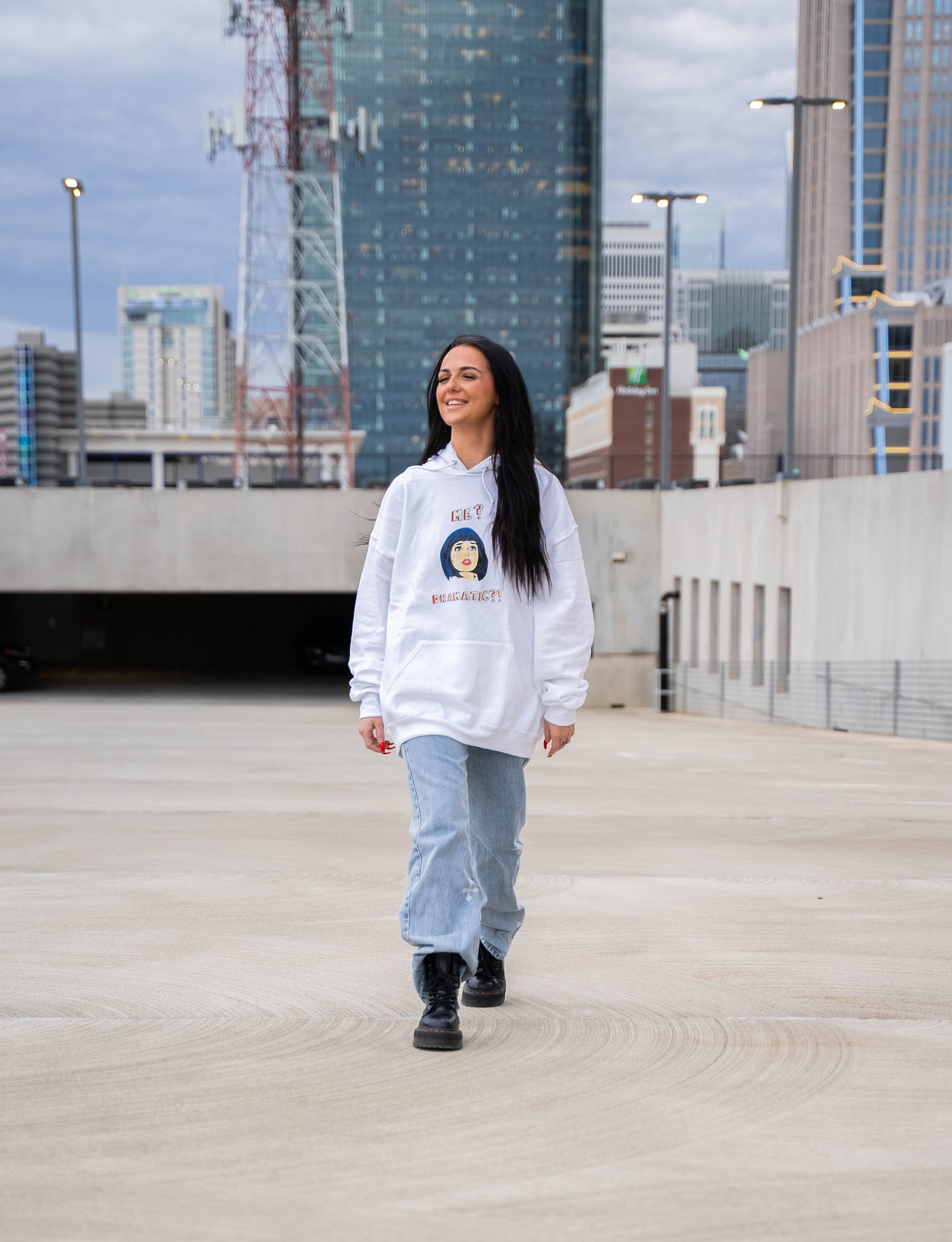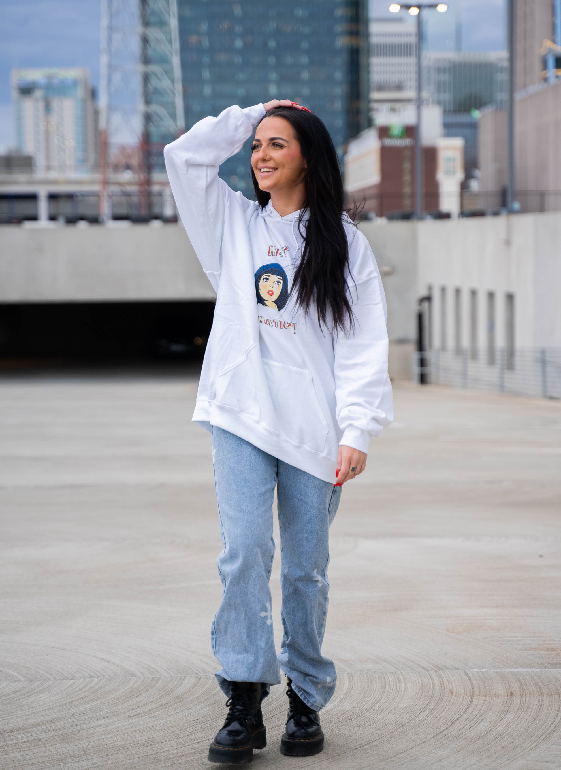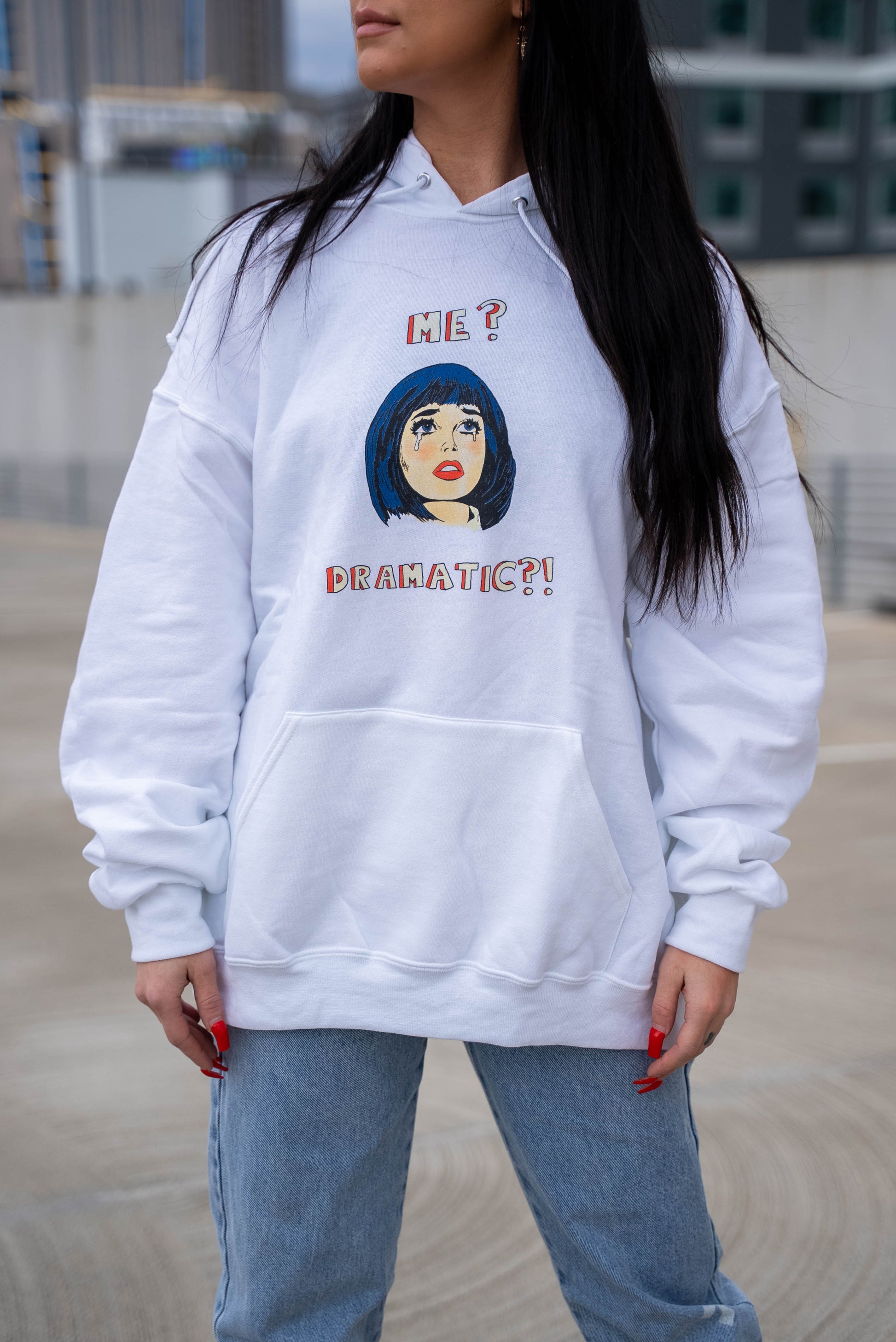 This adult hoodie features an artistic dramatic comic book style girl design.